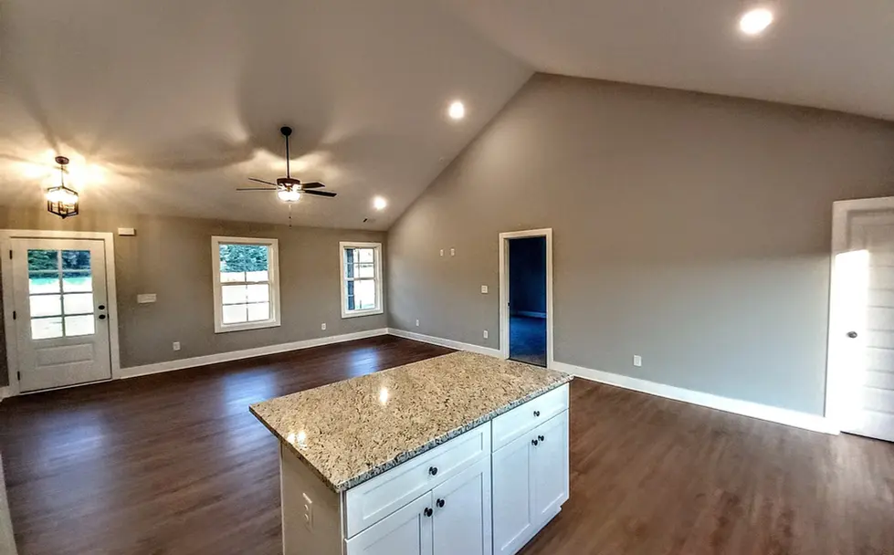 Imagine a cozy home made from natural materials like wood and stone, featuring a welcoming front porch, all on one level! Large windows that let in plenty of natural light. This farmhouse has a practical, open layout, with a living room that transitions smoothly into a kitchen, creating a communal atmosphere perfect for gatherings.